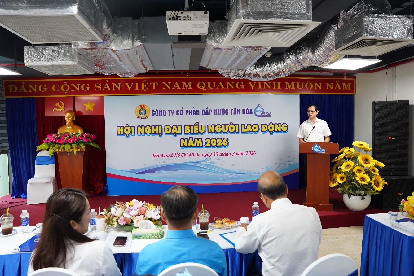 Ngày 30/3/2026, Công ty Cổ phần Cấp nước Tân Hòa đã tổ chức thành công Hội nghị Đại biểu Người lao động năm 2026 trong không khí trang trọng, dân chủ và đầy tinh thần trách nhiệm. Hội nghị là dịp quan trọng để tập thể người lao động cùng Ban Lãnh đạo Công ty nhìn lại chặng đường hoạt động trong năm qua, đồng thời định hướng cho sự phát triển bền vững trong thời gian tới.