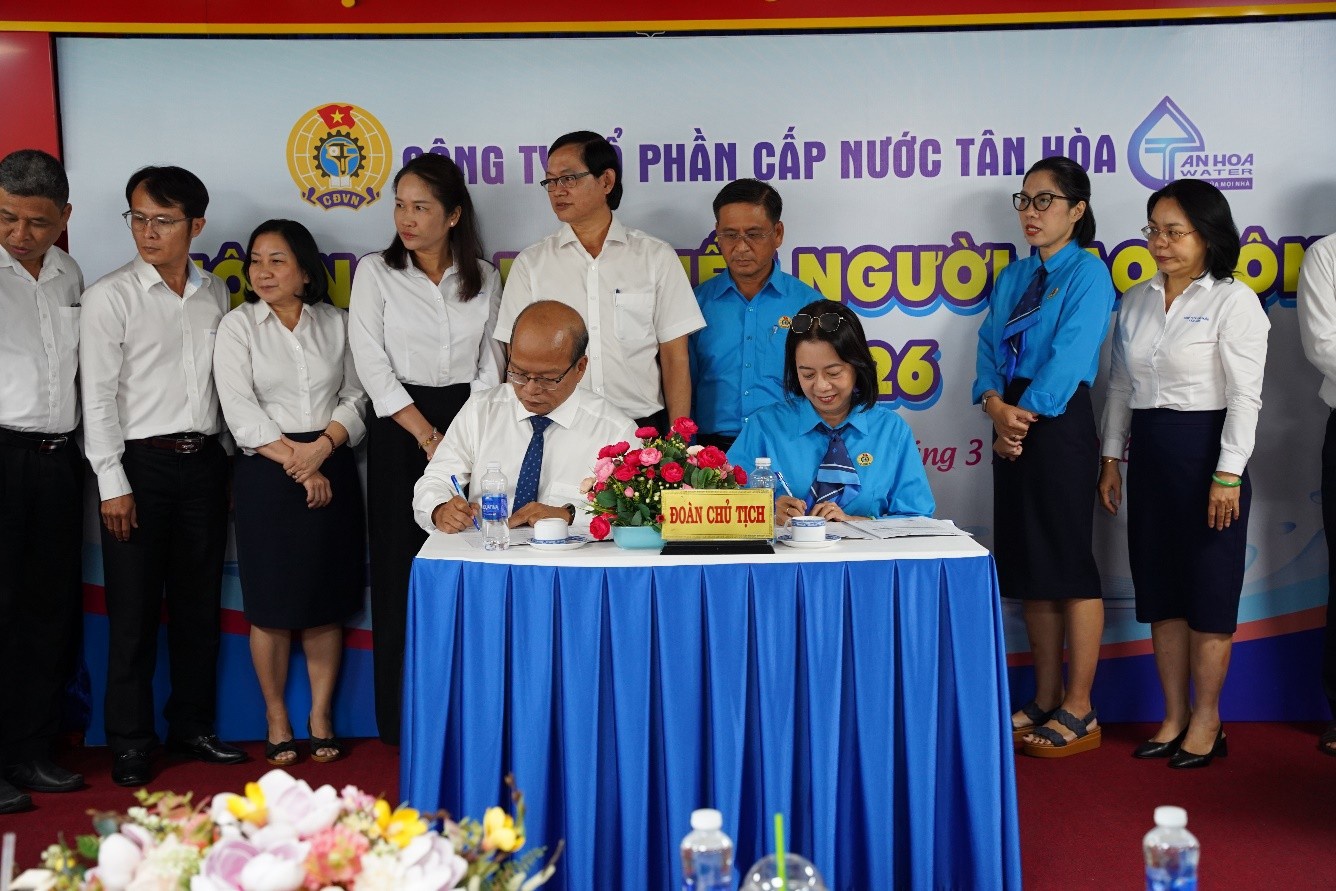Với tinh thần dân chủ, đoàn kết và trách nhiệm, Hội nghị Đại biểu Người lao động năm 2026 của Công ty Cổ phần Cấp nước Tân Hòa đã diễn ra thành công tốt đẹp. Đây sẽ là động lực quan trọng để toàn thể cán bộ, công nhân viên tiếp tục nỗ lực, chung sức đồng lòng, góp phần hoàn thành thắng lợi các nhiệm vụ đã đề ra trong năm 2026.