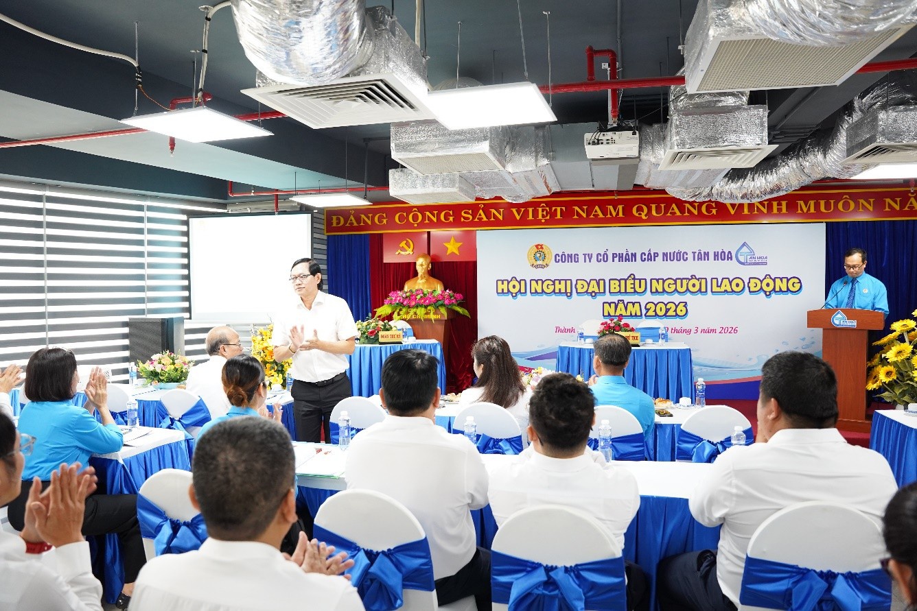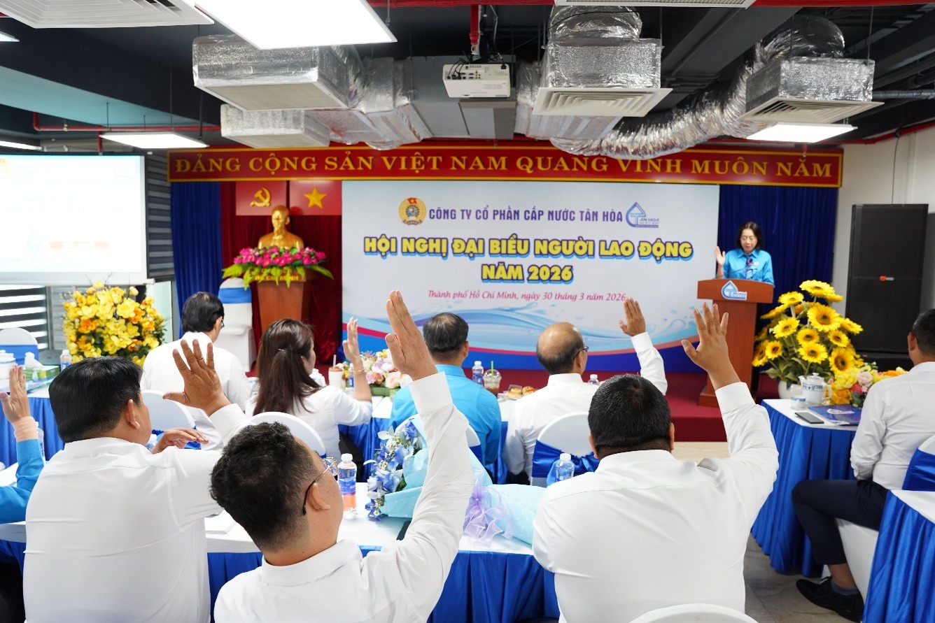 Với tinh thần dân chủ, đoàn kết và trách nhiệm, Hội nghị Đại biểu Người lao động năm 2026 của Công ty Cổ phần Cấp nước Tân Hòa đã diễn ra thành công tốt đẹp. Đây sẽ là động lực quan trọng để toàn thể cán bộ, công nhân viên tiếp tục nỗ lực, chung sức đồng lòng, góp phần hoàn thành thắng lợi các nhiệm vụ đã đề ra trong năm 2026.