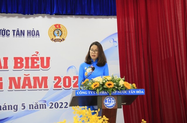 Bà Trần Thị Ngọc Luyến – Bí thư Đảng bộ- Chủ tịch Hội đồng Quản trị Công ty Cổ phần CN Tân Hòa phát biểu chỉ đạo tại Hội nghị đã đánh giá cao sự nỗ lực của người lao động trong năm 2021 trước tình hình diễn biến dịch Covid-19. Năm 2022, đề nghị chính quyền và đoàn thể tiếp tục quan tâm, xây dựng các giải pháp để thực hiện tốt các công tác chăm lo, đảm bảo chế độ cho NLĐ, tập trung vào những NLĐ có hoàn cảnh khó khăn tại đơn vị. Quan tâm thêm các công tác bồi dưỡng, đào tạo, xây dựng nguồn nhân lực có chất lượng để hoàn thành nhiệm vụ trước mắt và lâu dài. Tiếp tục có nhiều giải pháp để tăng năng suất lao động, chăm lo cải thiện điều kiện làm việc và thu nhập cho NLĐ, minh bạch trong công tác trả lương thưởng, các chế độ chính sách đối với NLĐ.