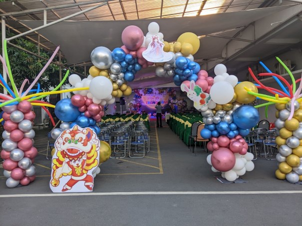 Cổng chào bằng bong bóng và những hình ảnh thật lung linh, thu hút các bé