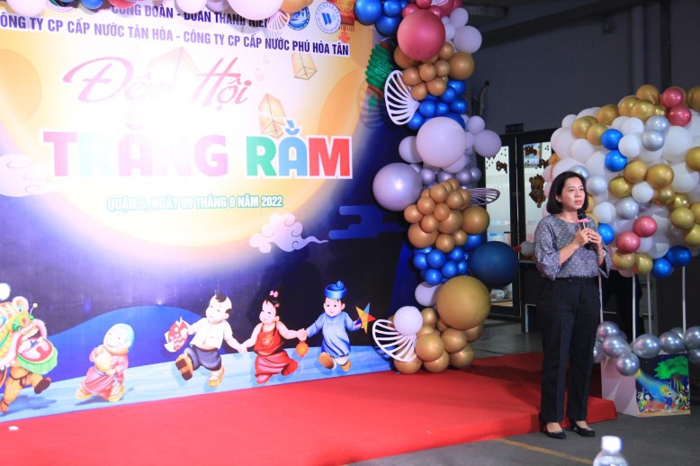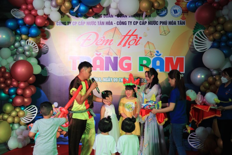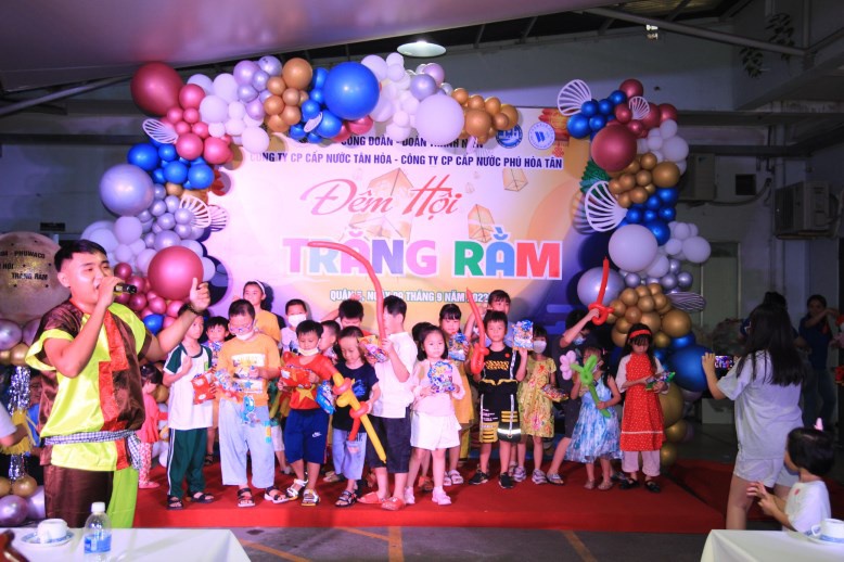 Đến tham gia chương trình, về phía Đảng Ủy Công ty có Bà Trần Thị Ngọc Luyến – Bí thư Đảng bộ - Chủ tịch hội đồng Quản trị Công ty Cổ phần Cấp nước Tân Hòa; Ông Nguyễn Trần Lam – Đảng ủy viên – Phó Giám đốc Công ty; Ông Nguyễn Văn Đảm - Ủy viên Thường Vụ Đảng Ủy – Trưởng Phòng TCHC Công ty; Bà Nguyễn Ngọc Ánh Hoa – Chủ tịch Công đoàn Công ty; cùng 107 các Bé là con CB-CNVC Công ty cùng nô nức đến tham dự “ Đêm hội trăng rằm”.