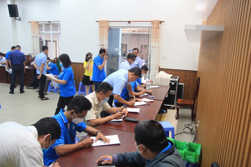 Cán bộ, người lao động viết phiếu đăng ký hiến máu
