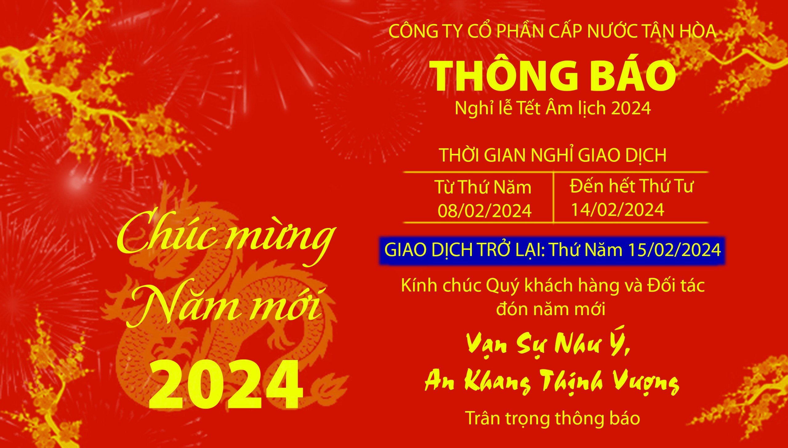 Nay, Công ty xin trân trọng thông báo đến Quý khách lịch nghỉ Tết Nguyên Đán – Giáp Thìn 2024 của Công ty như sau: