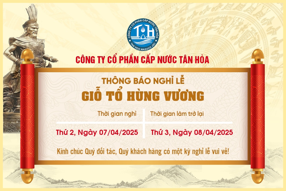 Công ty Cổ phần Cấp nước Tân Hòa xin trân trọng thông báo đến Quý khách lịch nghỉ Tết Nguyên Đán Ất Tỵ 2025